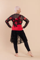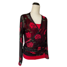 Mesh Stretch Ballerina Wrap Top Red Roses