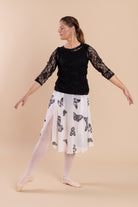 The longer length is made practical with a subtle side split which is flattering for every BODY. It's swirly but not too swirly, so you won't get lost in fabric and the elastic waistband will keep you comfy all through class.
