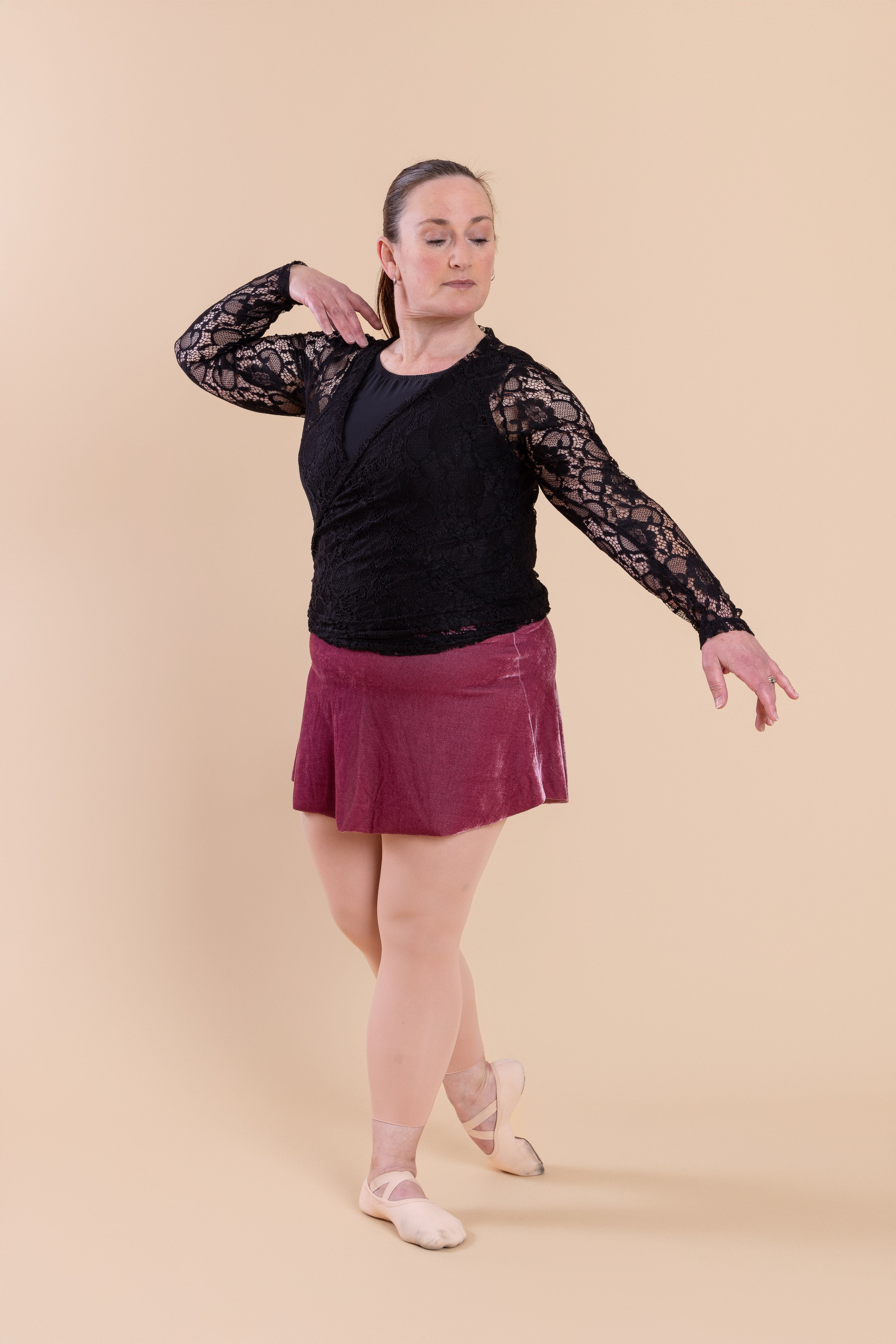 Ours is a sweet, smooth pull on skirt, cut high at the sides to lengthen your leg line and lower at the front and back for a little more modesty. They're not just for the young ones! Designed to sit below the waistline and just above the hip, our SAB's are flattering, super comfortable and easy for everyone to wear In stretch plush velveteen.
